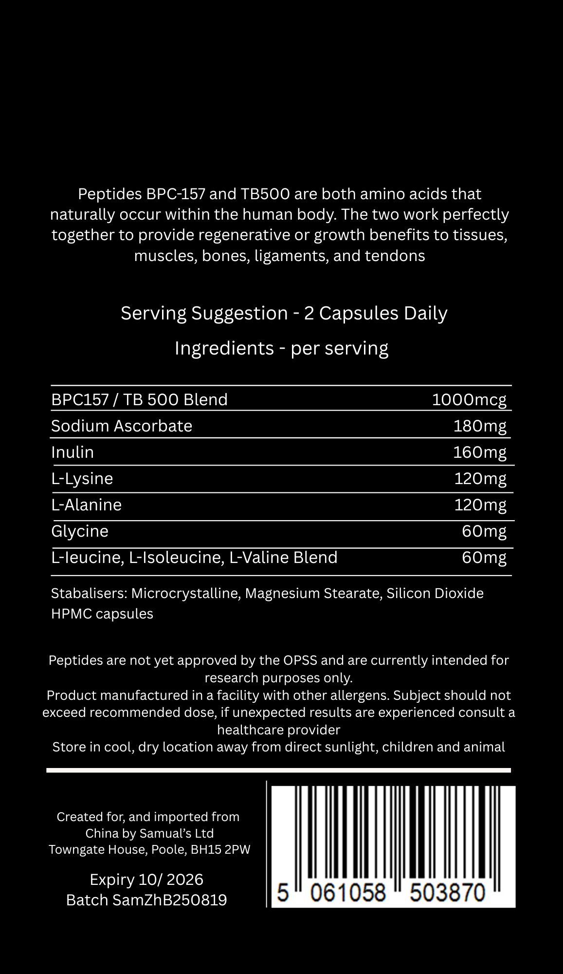 Our powerful 1000mcg blend product of alongside Samuals best selling GHK for next-level recovery. These two compounds work synergistically to support tissue repair, inflammation reduction, and overall healing — perfect for active bodies and long-term wellness.